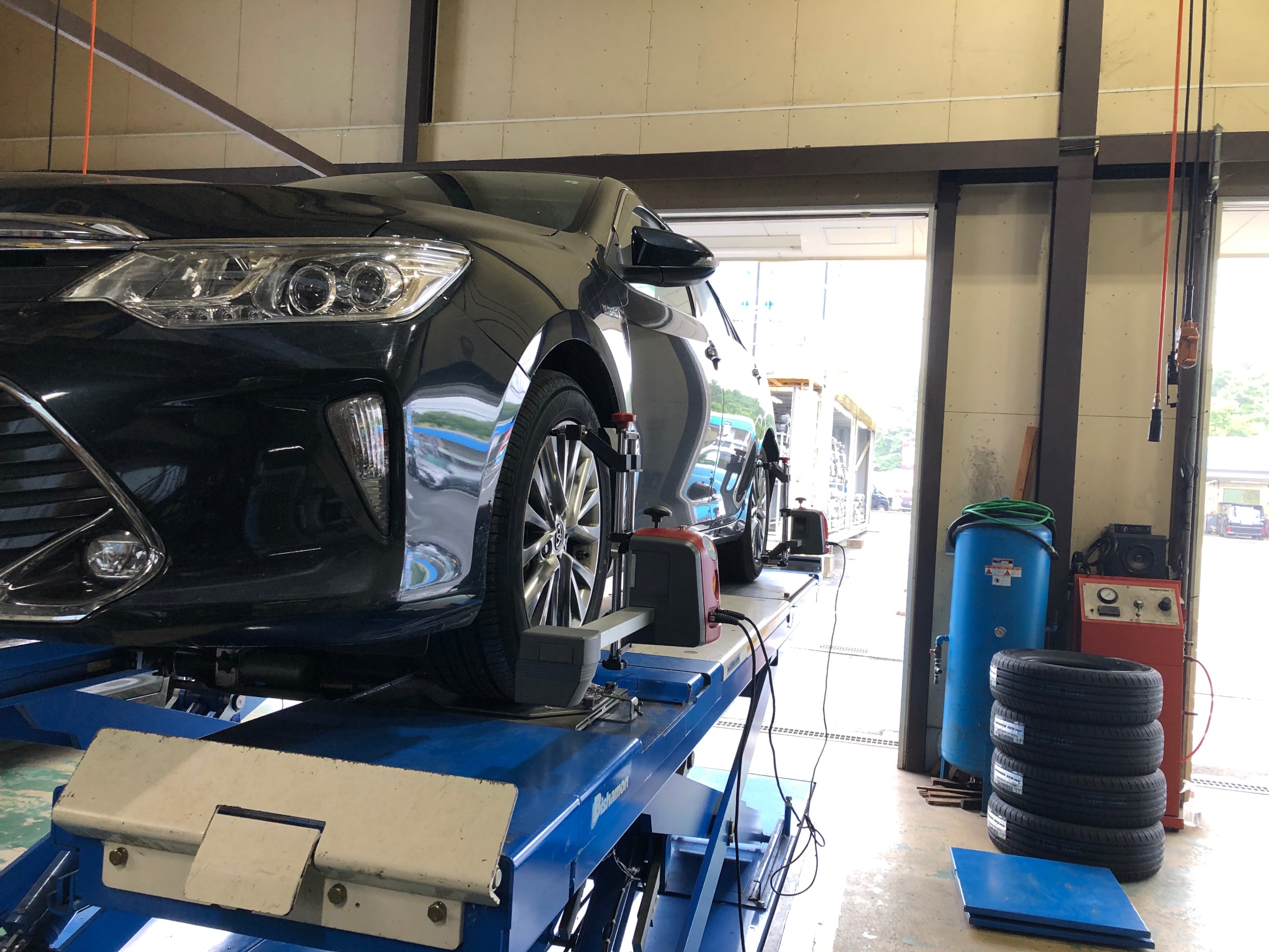 事故して足廻りを交換した為、アライメントになりました。