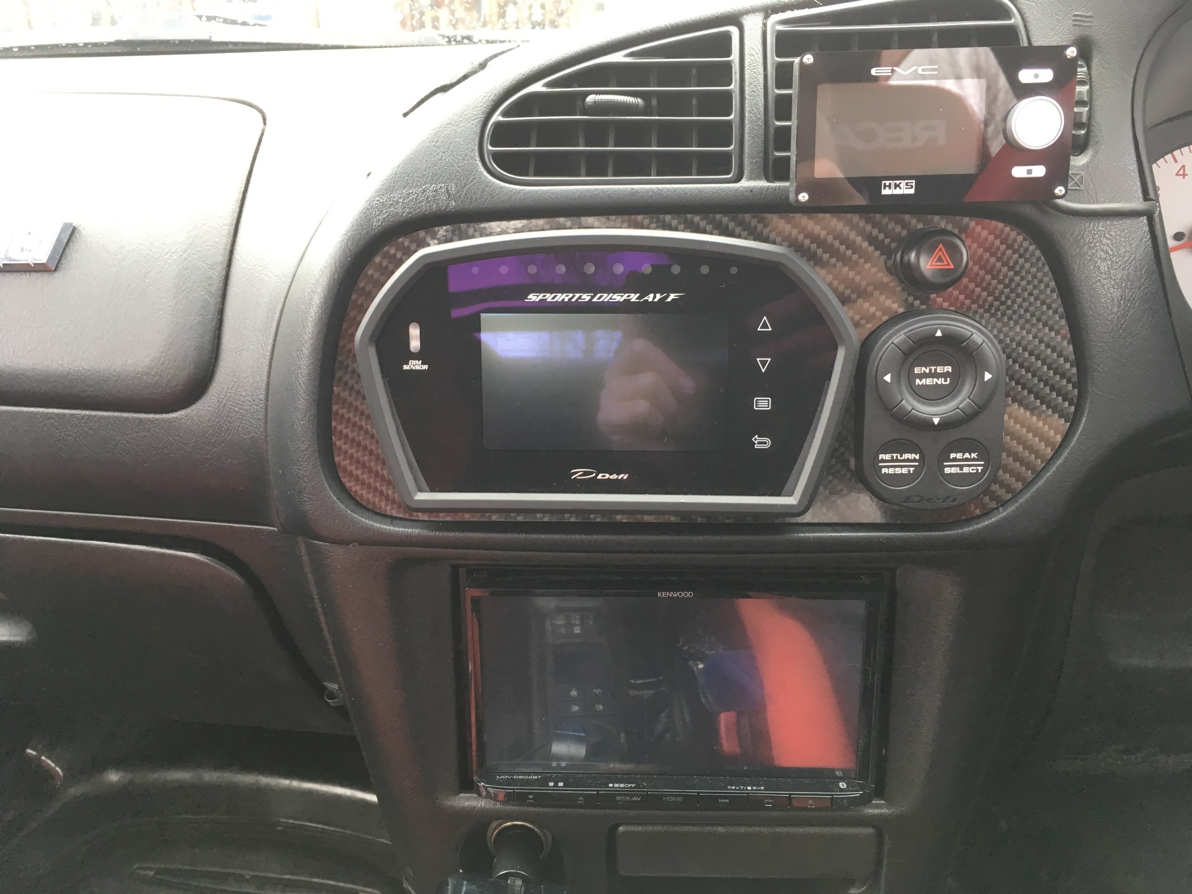 パネルスペースがあるので、メーターコントローラーとハザードスイッチをカーボンパネルにビルトイン!