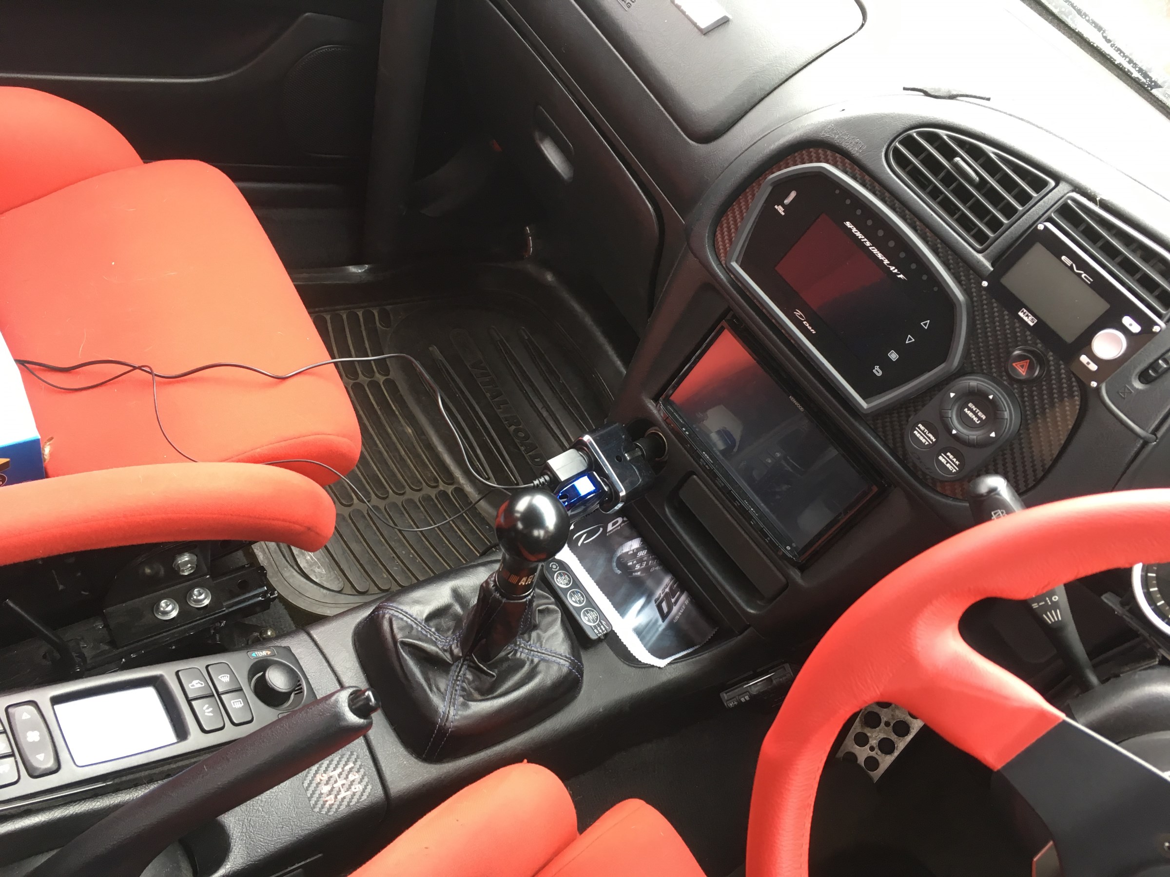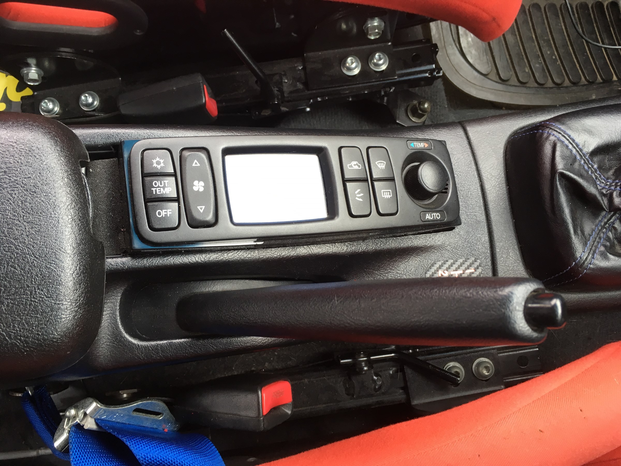 インタークーラー用のウォーターインジェクションスイッチは、サイドブレーキの下側サイドに移動し、触りやすい位置に!