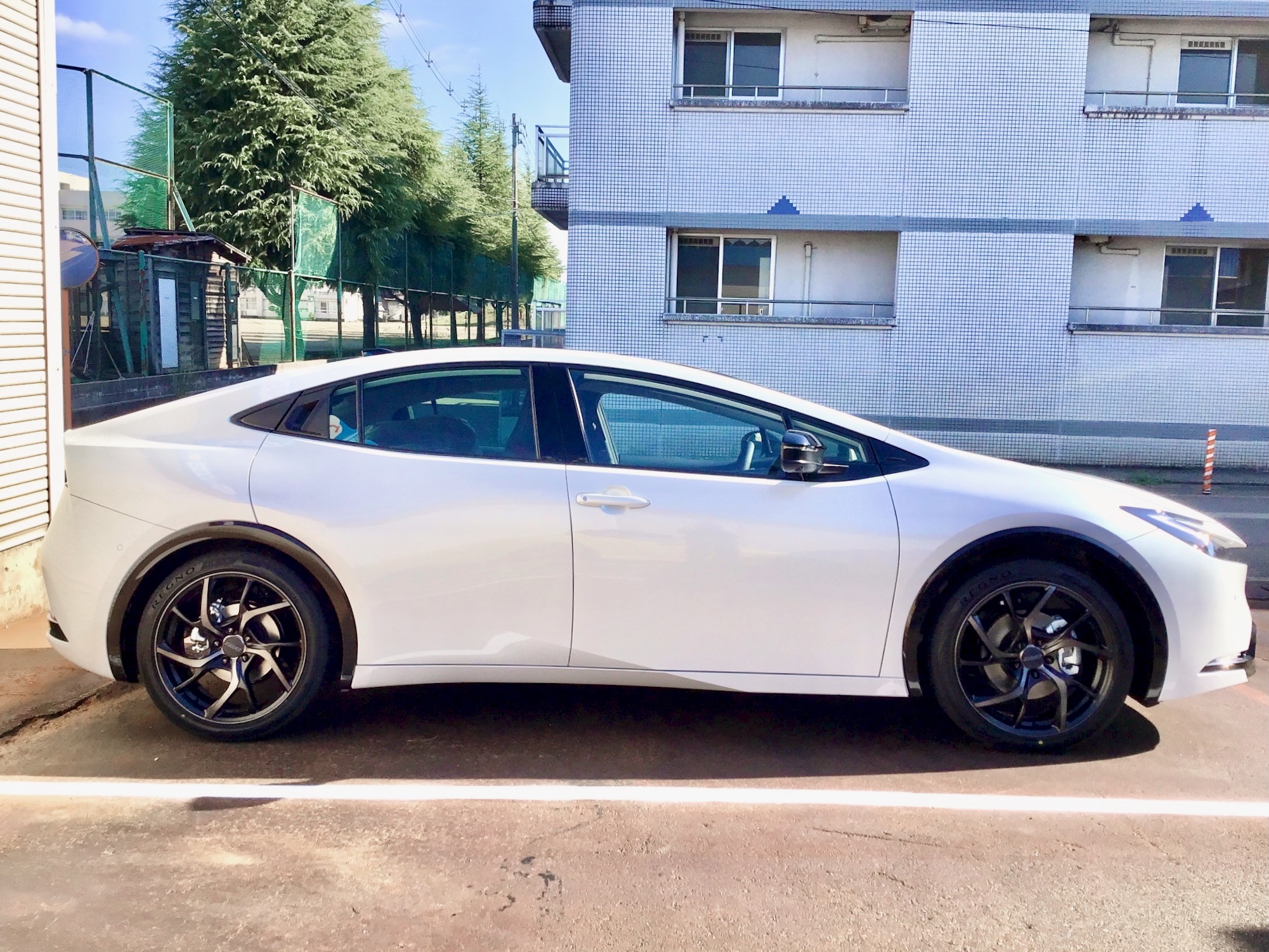 当初はスタッドレスタイヤとホイールを購入してクロスチェンジの予定でしたが、静粛性と乗り心地を重視したいとのご希望でしたので、純正装着タイヤは使用せずREGNO GR-XⅢとレイズ VMF C-01の組み合わせになりました。