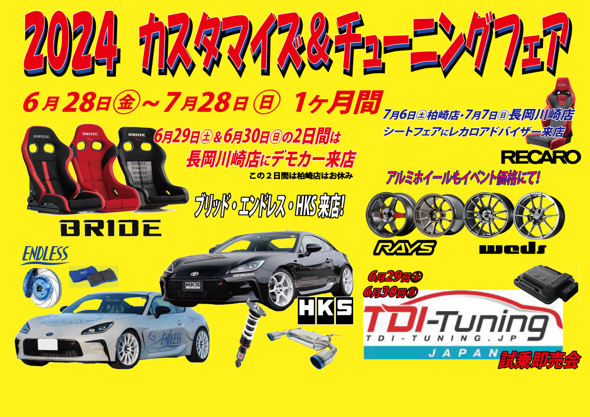 6月29日㊏・30日㊐は長岡店にてデモカーイベントを開催