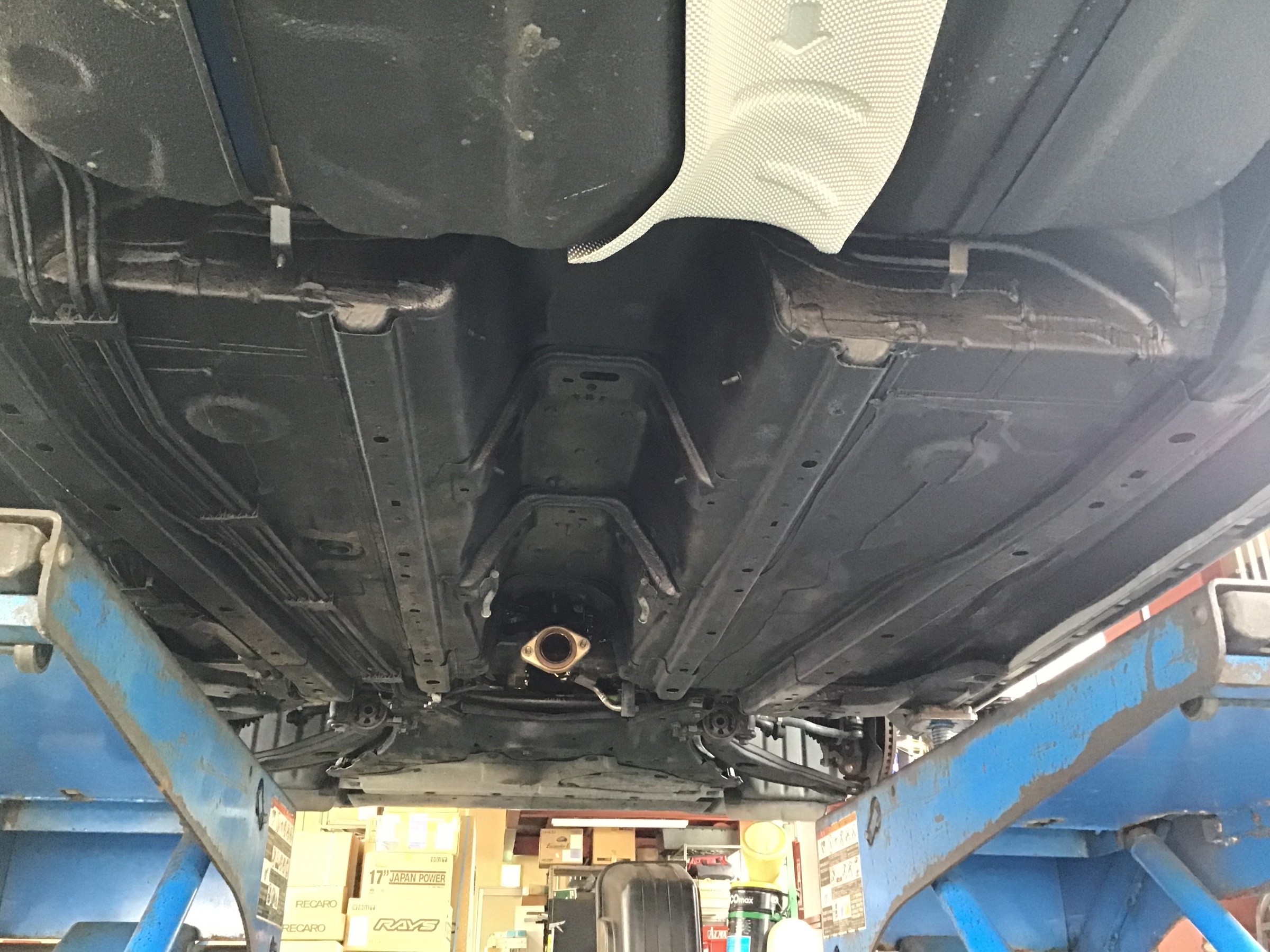 マフラーやカバー等を取り外して施工しました。