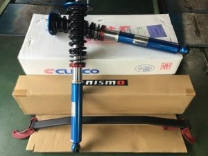 スカイライン(ER34)に車高調とタワーバーを
