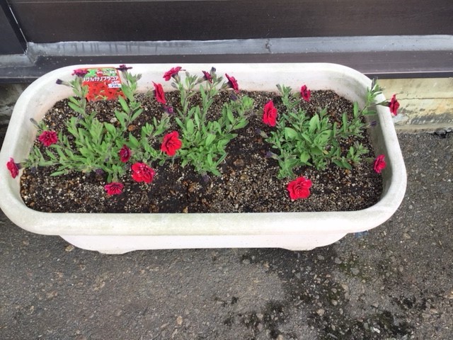 今日はこの間お店の花壇に植えたお花が