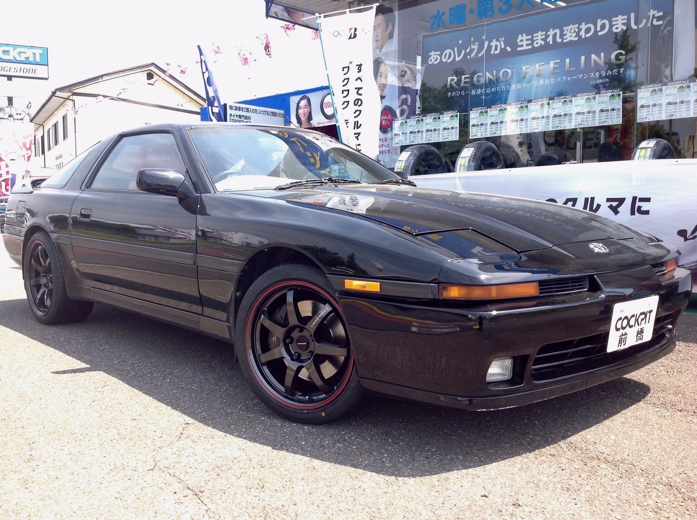 コクピット前橋スタッフ、やまだのスープラにPOTENZAの最新モデルS007AとHOT STUFFの新モデル CROSS SPEED HYPER EDITION CR7を組み合わせ、取り付けました。普段の通勤、スポーツ走行を両立させようと思い、このタイヤを選びました。