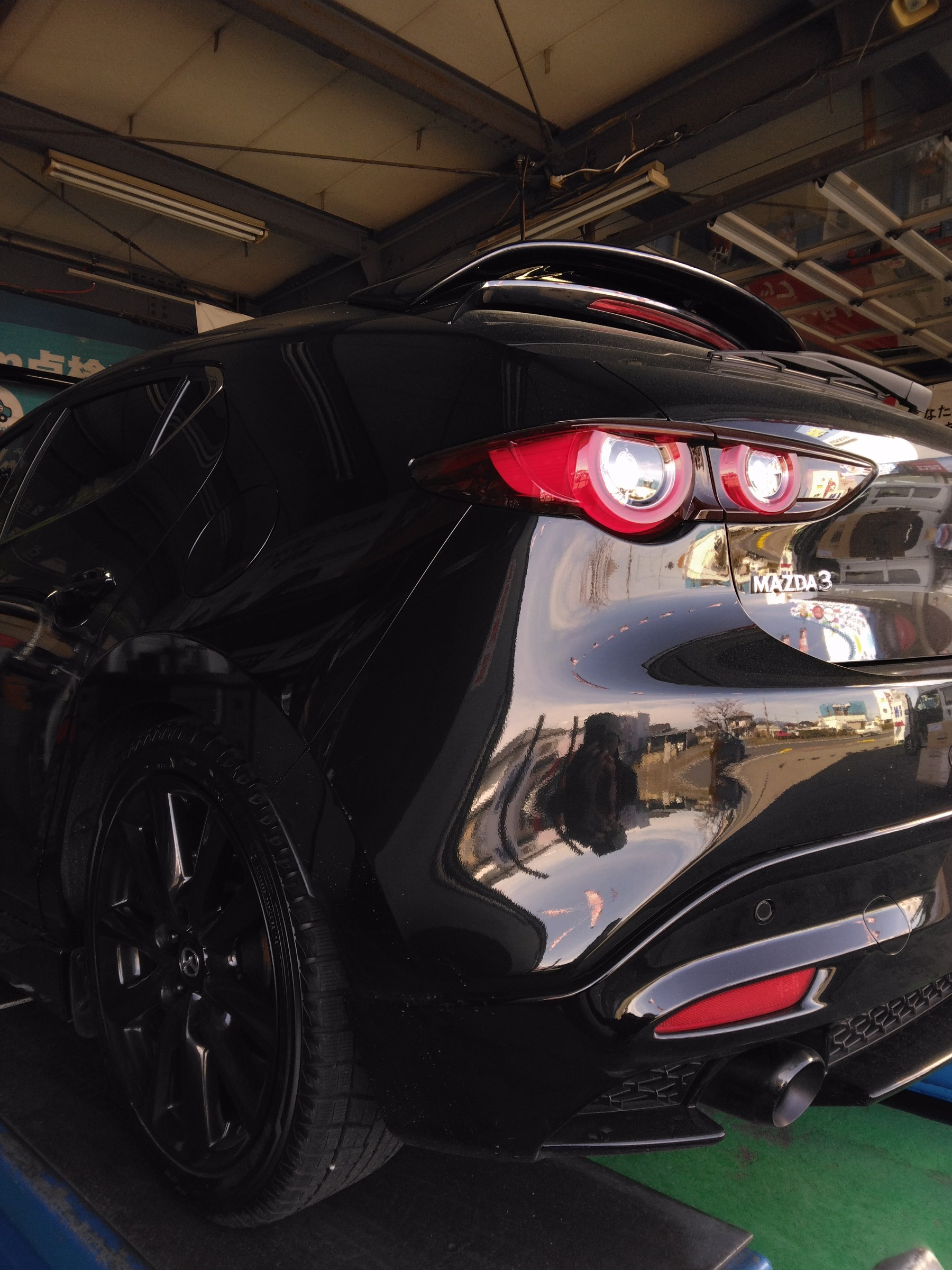 純正ホイールのデザインが素敵なMAZDA3ファストバックですが、ワークエモーションZR10の持つ迫力は全然違いました。