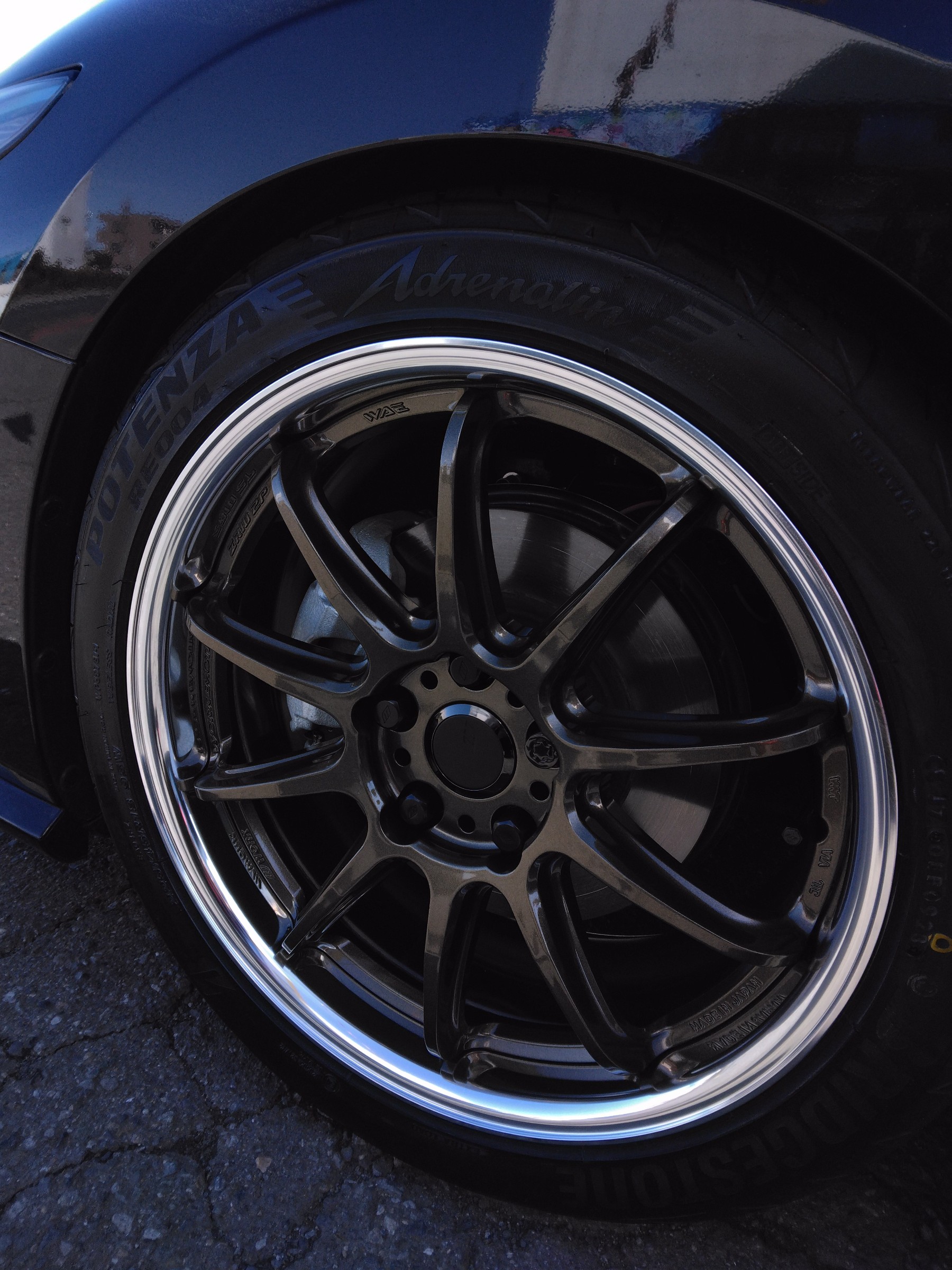 装着したのは、高い運動性能を持つスポーツタイヤながら、乗り心地、静粛性能も悪くないポテンザ アドレナリン RE004と、スポーツホイール直系の走りのデザインと2ピースホイールの華やかさを兼ね備えたワーク エモーション ZR10 2Pです。