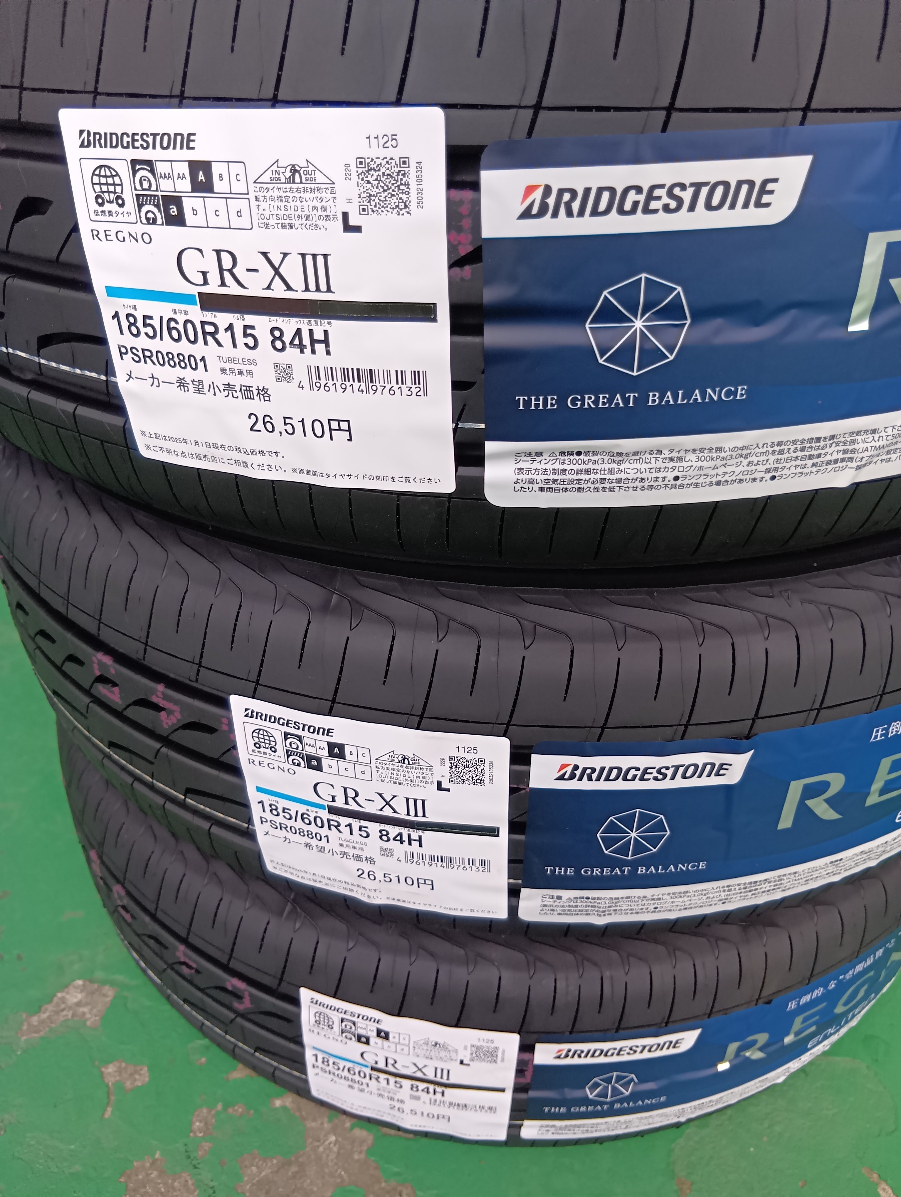 装着したのは、ブリヂストンのプレミアムタイヤ「レグノ GR-XⅢ」です。