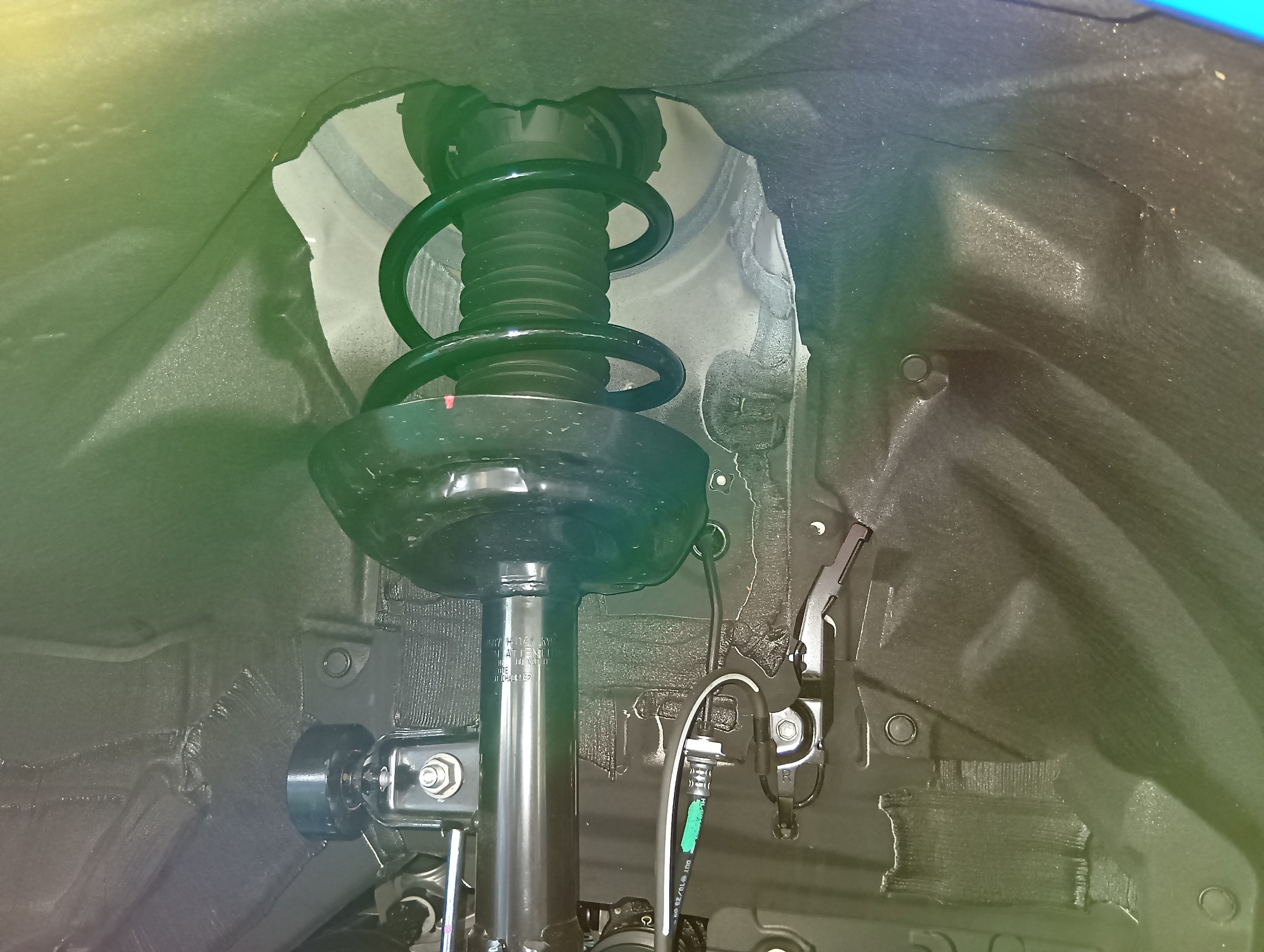 純正スプリングの自由長が長いので、慎重に作業しました。