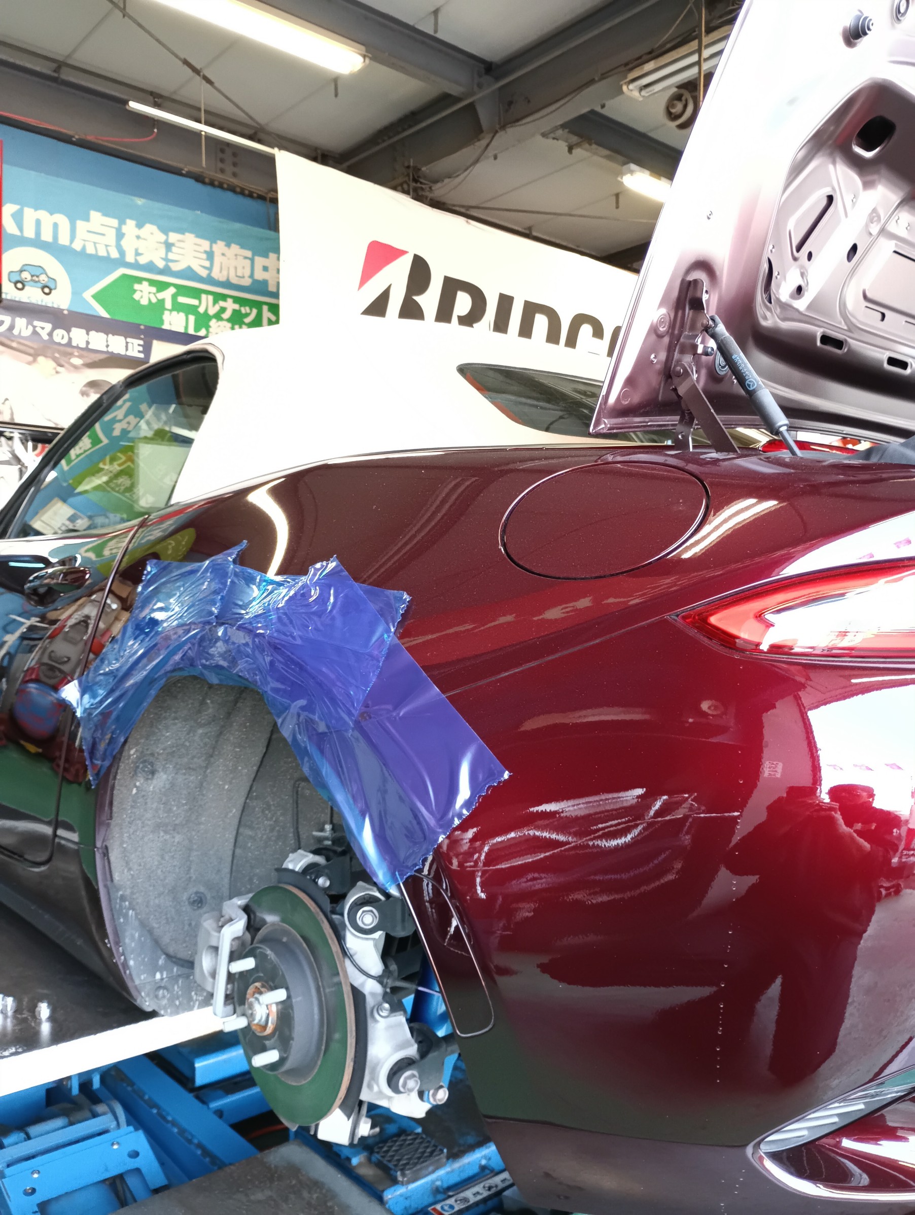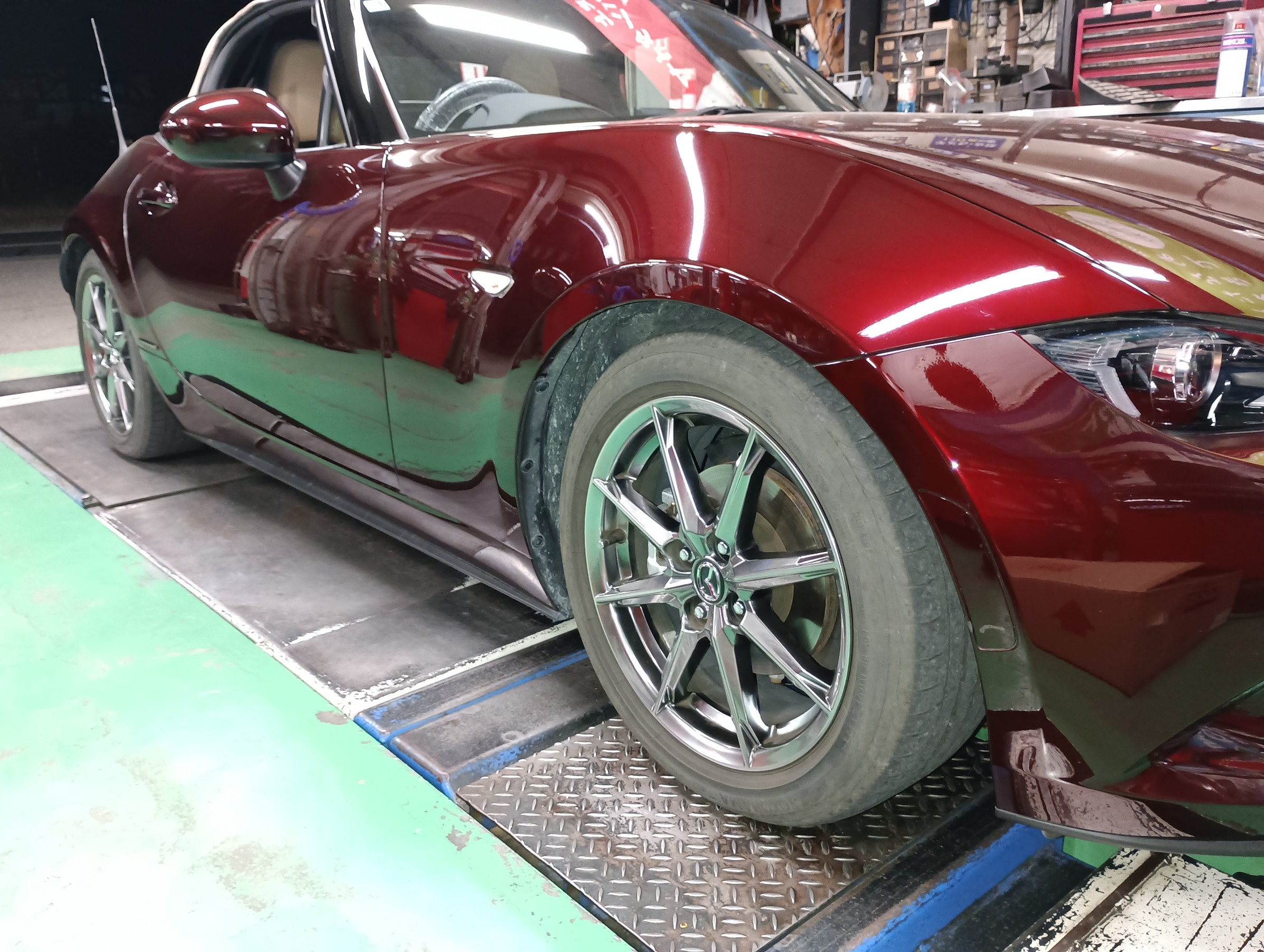車高調整、ライト光軸調整、アライメント調整を行い納車の準備を進めていきます。