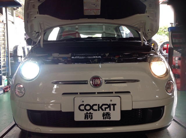 長年お付き合いのあるお客様のフィアット500に、スフィアLEDキット H7を取り付け致しました。