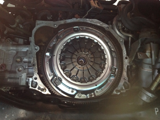 その理由は、アプライドA〜D型までは、フライホイールがデュアルマスフライホイールの為、シングルマス用のクラッチは取り付け不可という事でした。
