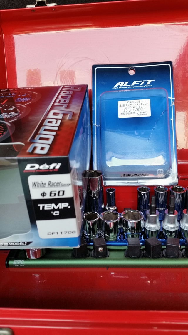 今日当店では、名物番長さんが自らデフィのレーサーゲージの水温計を取り付けていました。