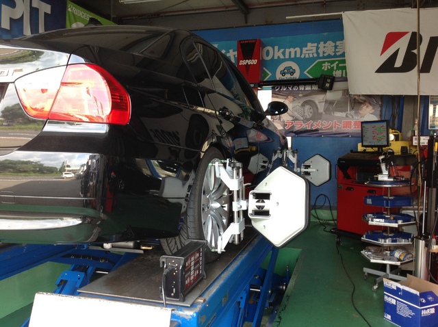 足回りの作業後は、アライメント調整が必要になりますが、こちらのE90の様に、ナックルも脱着になると、アライメント調整は重要です。