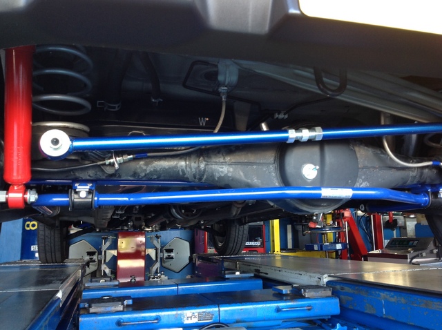 これを基準の範囲までマイナス方向にもっていき、後ろも調整式のラテラルリンクでしたので、タイヤの出具合に注意しながら、スラスト角がなるべく無くなる方向に調整しました。