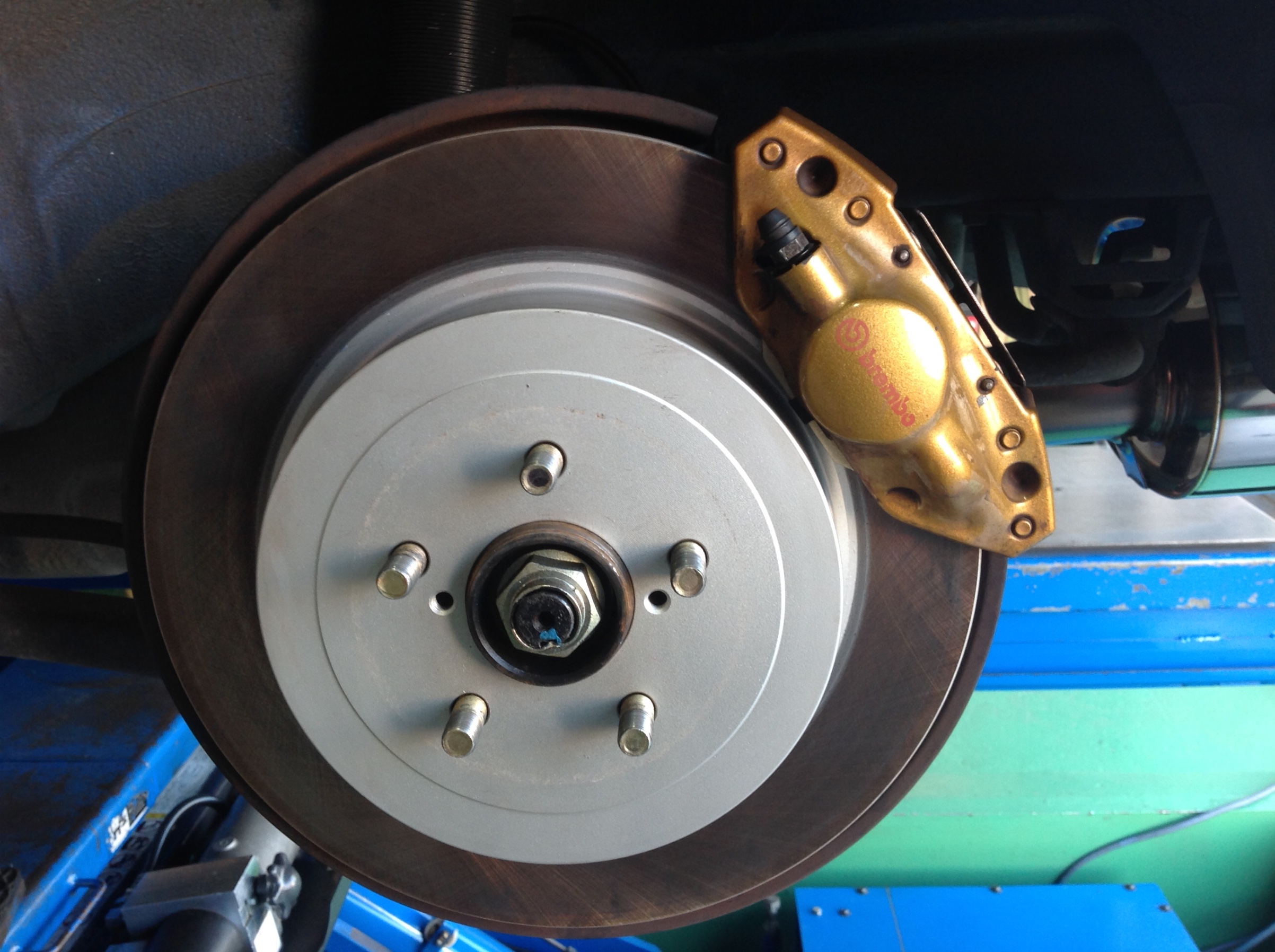 ブレーキパッド、ブレーキローター、ブレーキライン、マフラーの交換を希望されました。