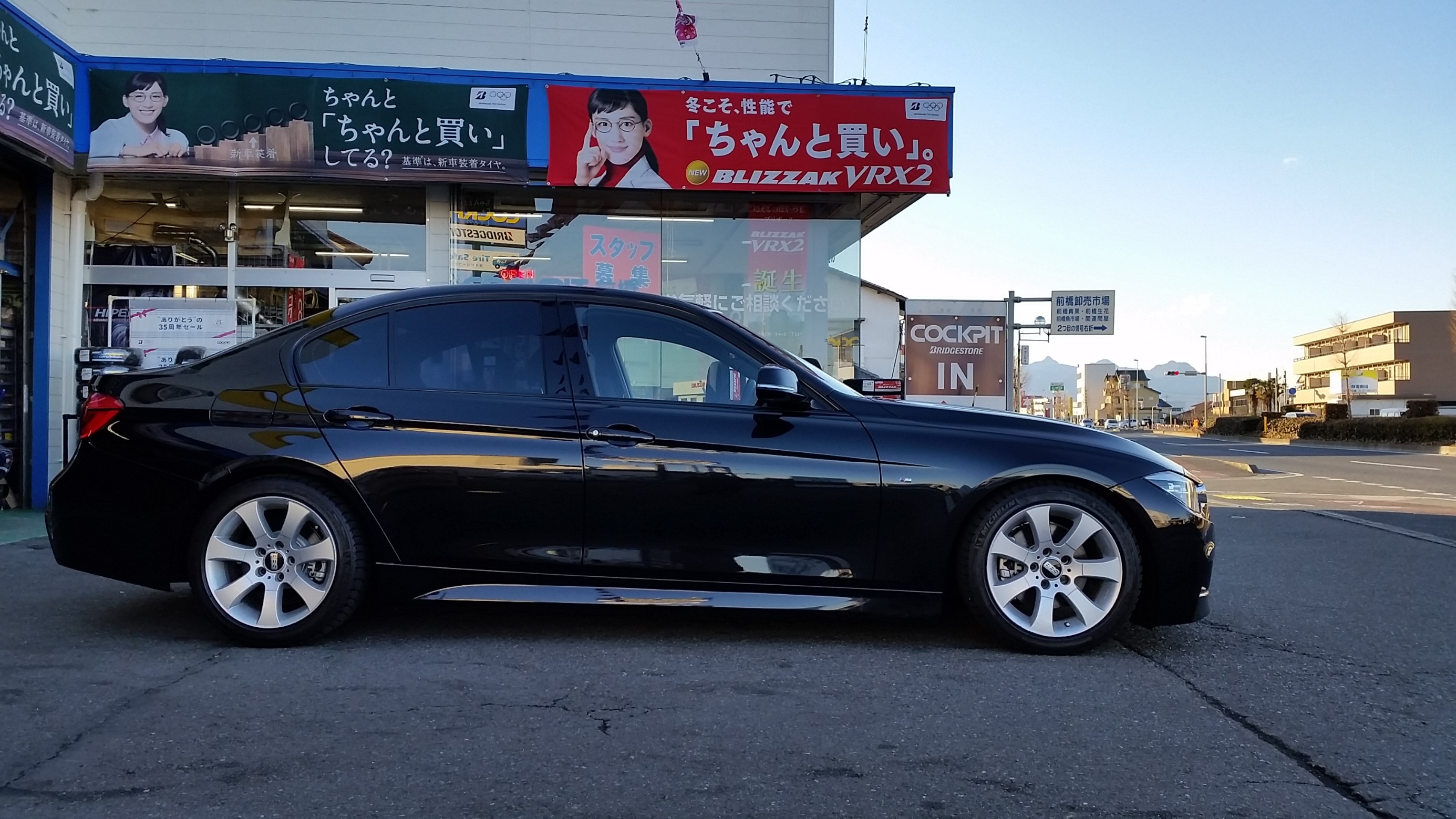 もともと車高も低くて充分すぎるくらいカッコいいF30 BMW 320iですが、さらにローダウンするとイメージ変わります。