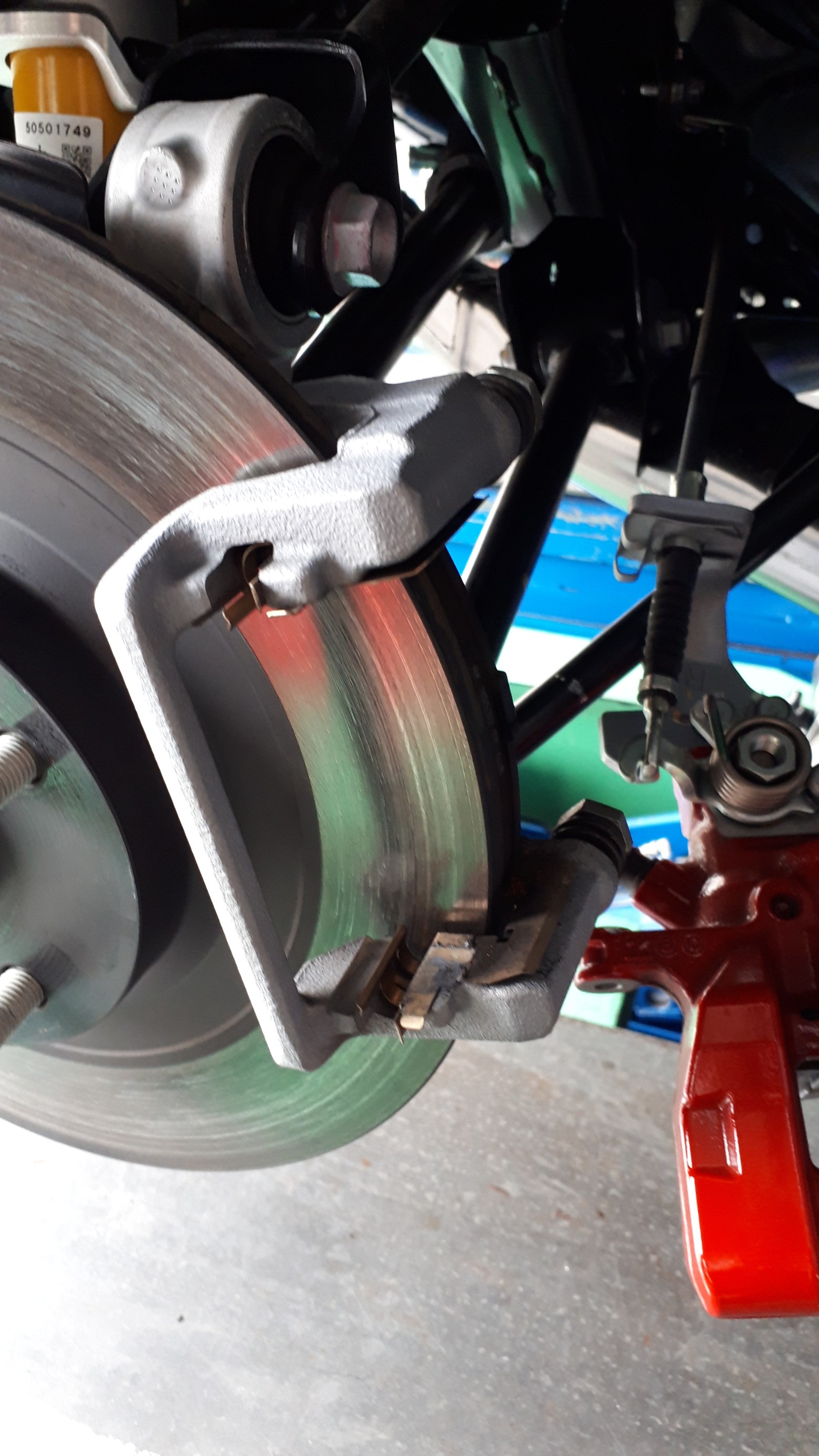 リアは、キャリパーを外してパッドを交換します。