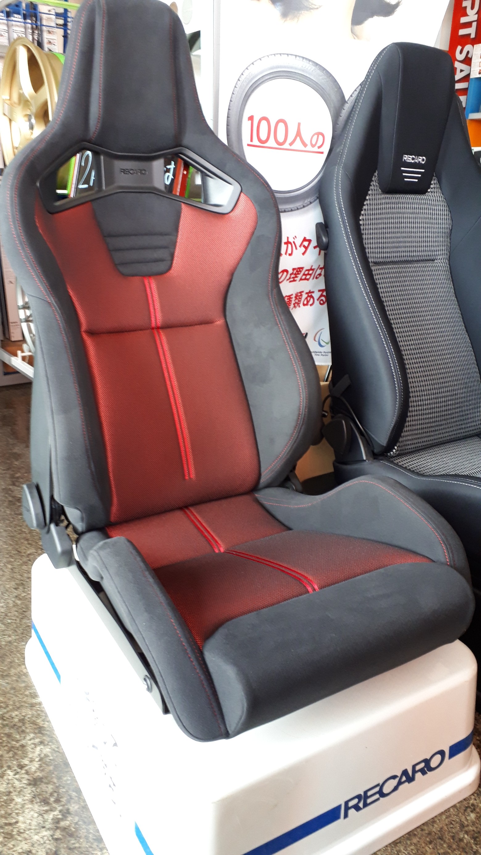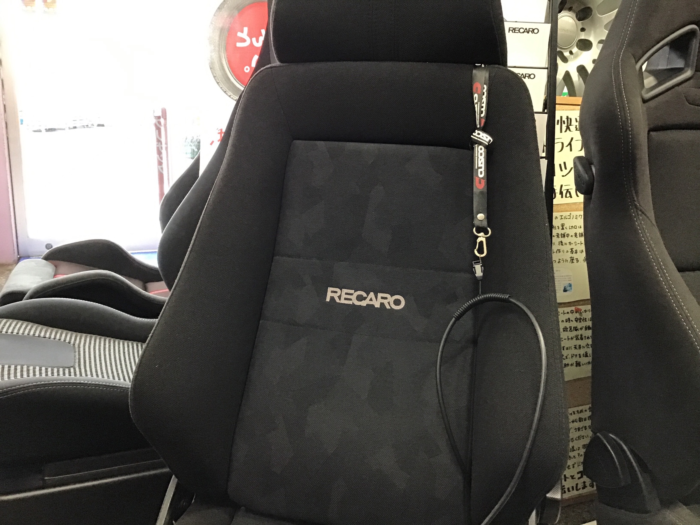 当店に展示中のレカロシートを座り比べてもらっている中で