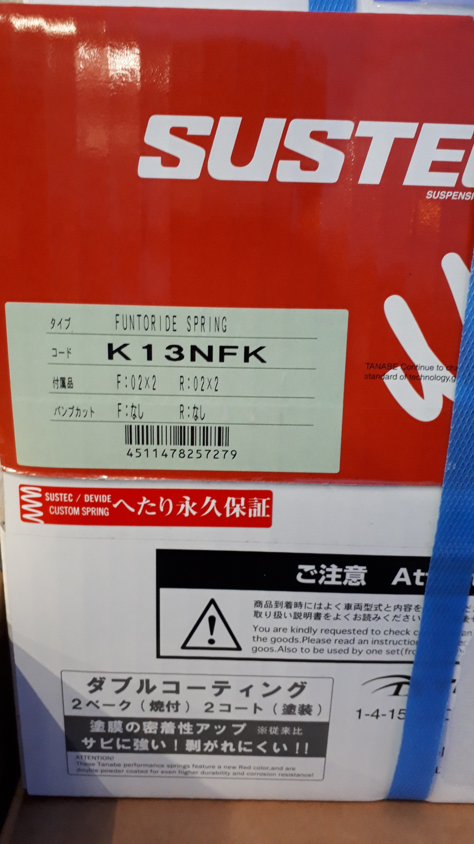 今年に入り交換が続くタナベさんのローダウンスプリングを装着しました。