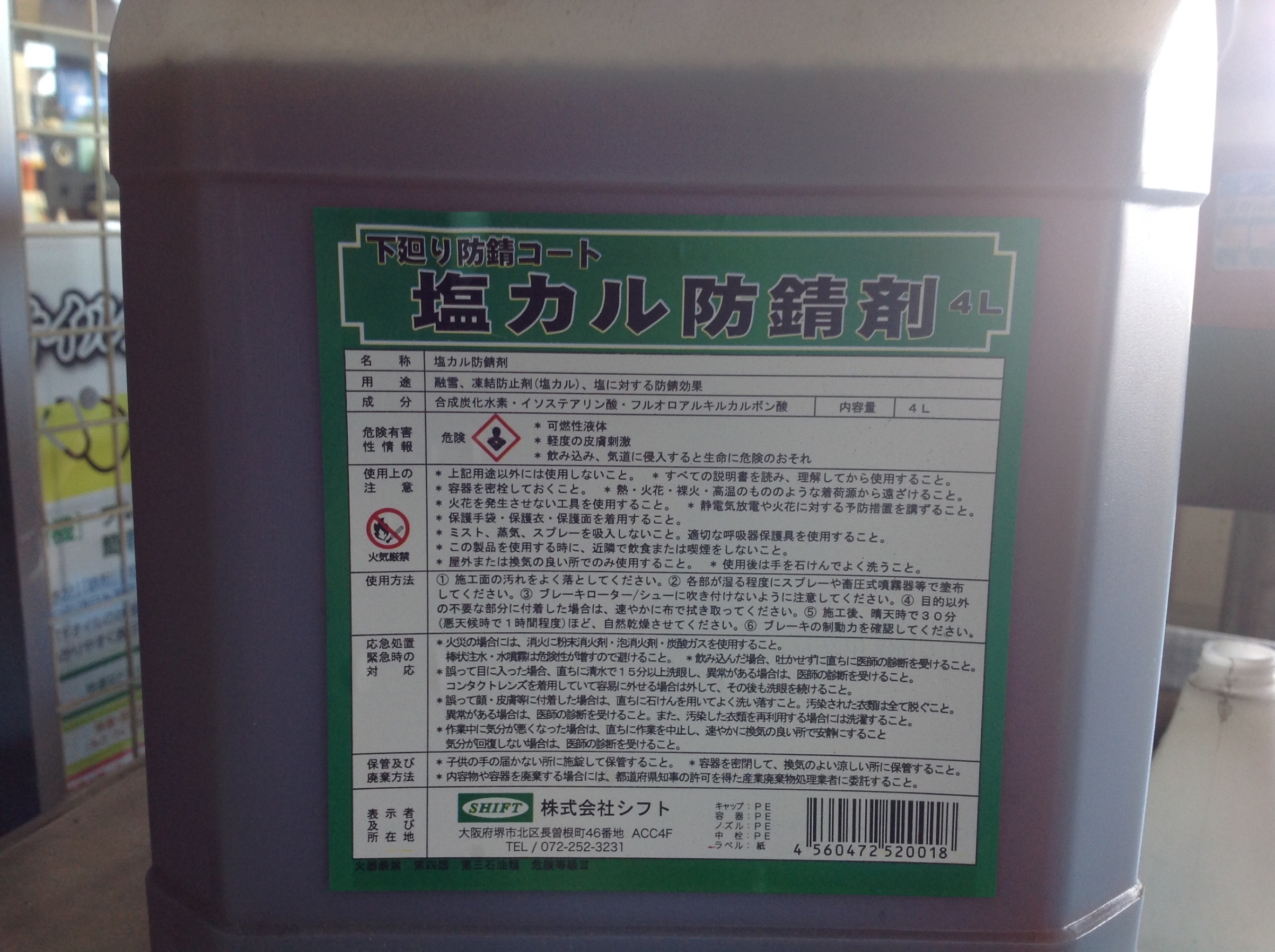 当店で使用しているのは株式会社シフトの防錆剤になります。雪道に散布された融雪剤(塩化カ