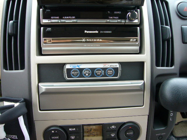 ナビは人気のパナソニック・ストラーダ、そしてリヤカメラもスマートに加工装着させていただいきました。