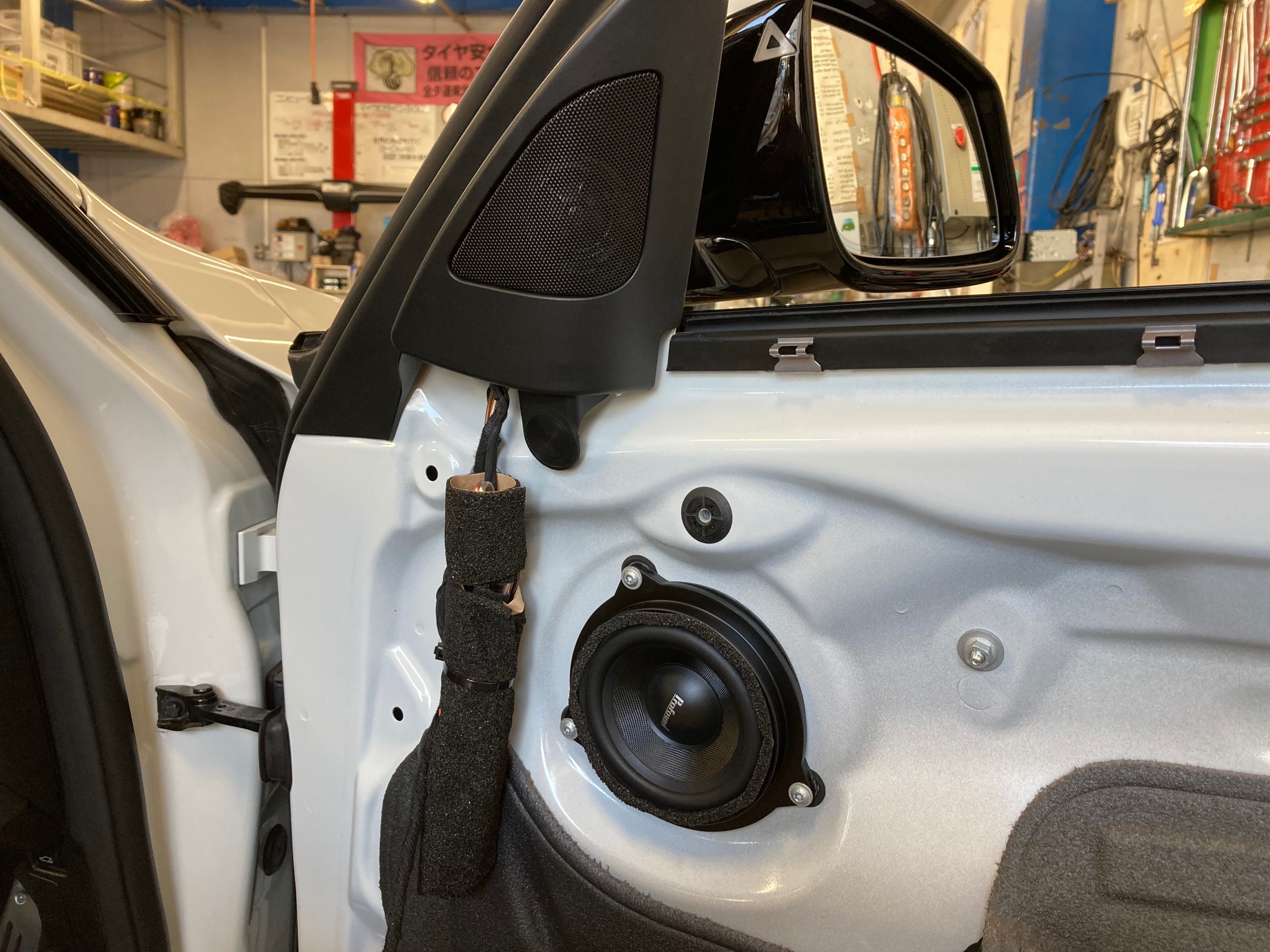 いつもタイヤ交換などでご入庫のお客様、今回はより良いサウンドを求めスピーカーの交換です☆