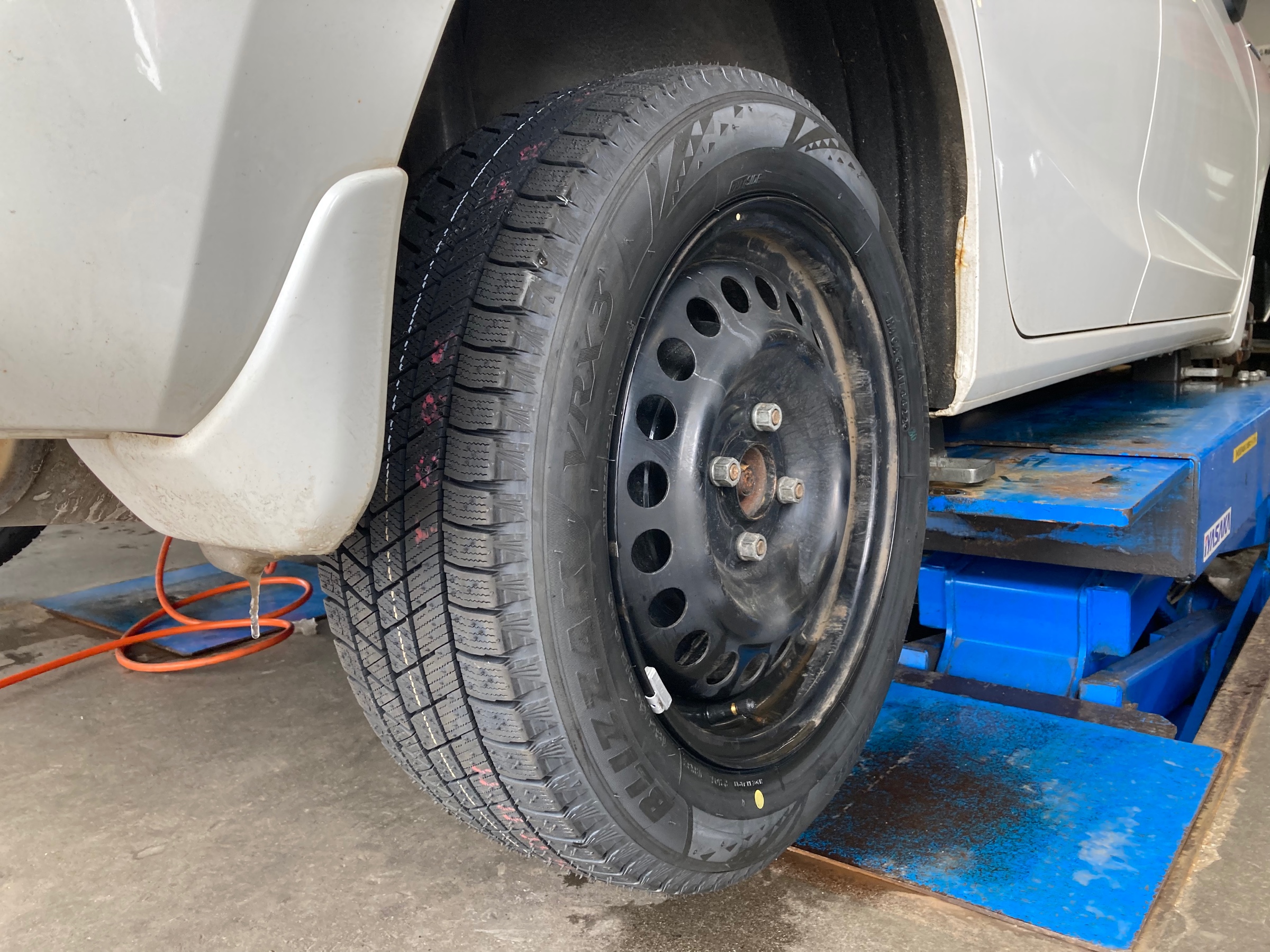 はじめは、フィットハイブリッドへ大人気の「ブリザック VRX3」を装着!