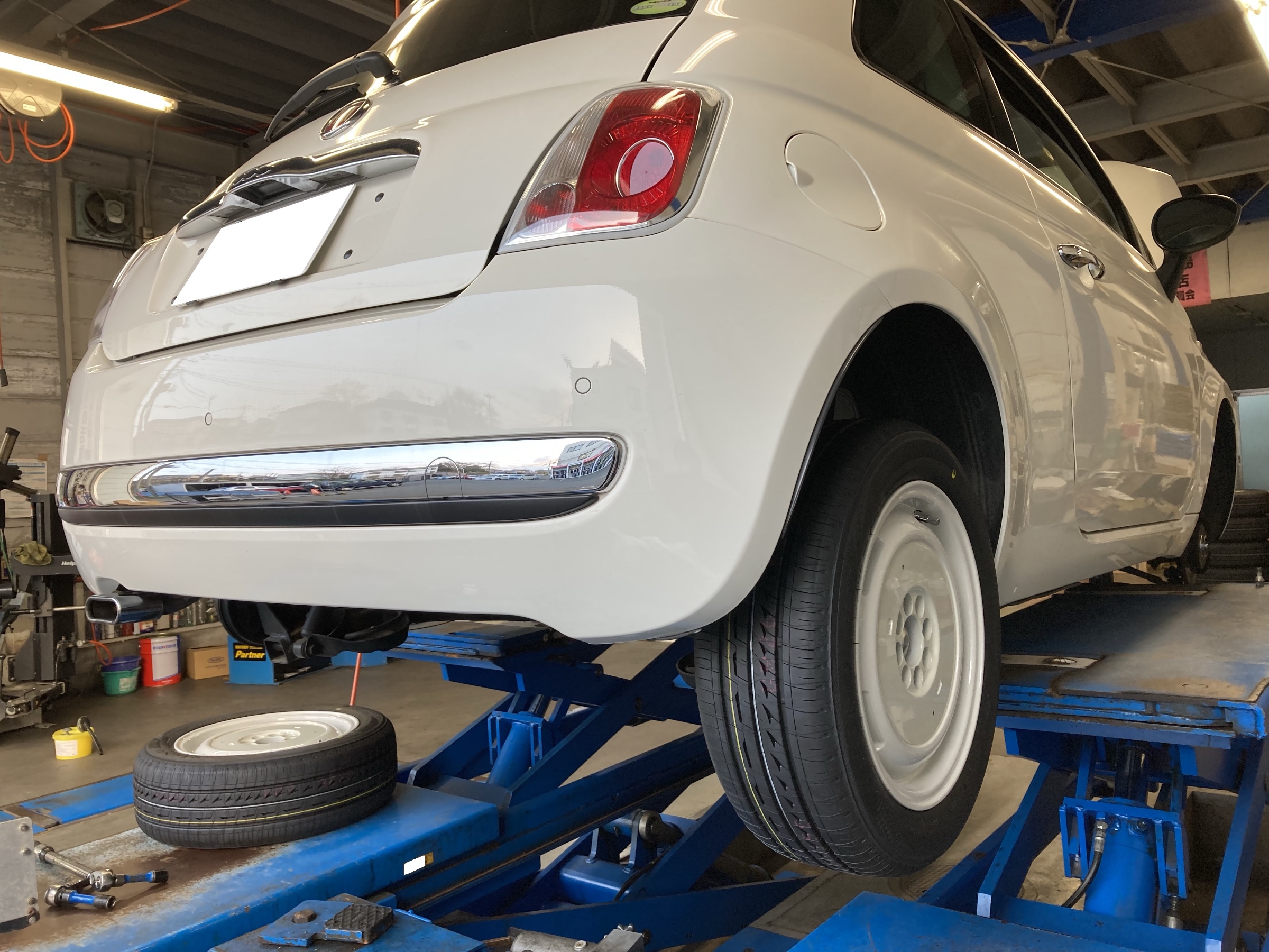 続いてフィアット500のお客様もタイヤ交換!