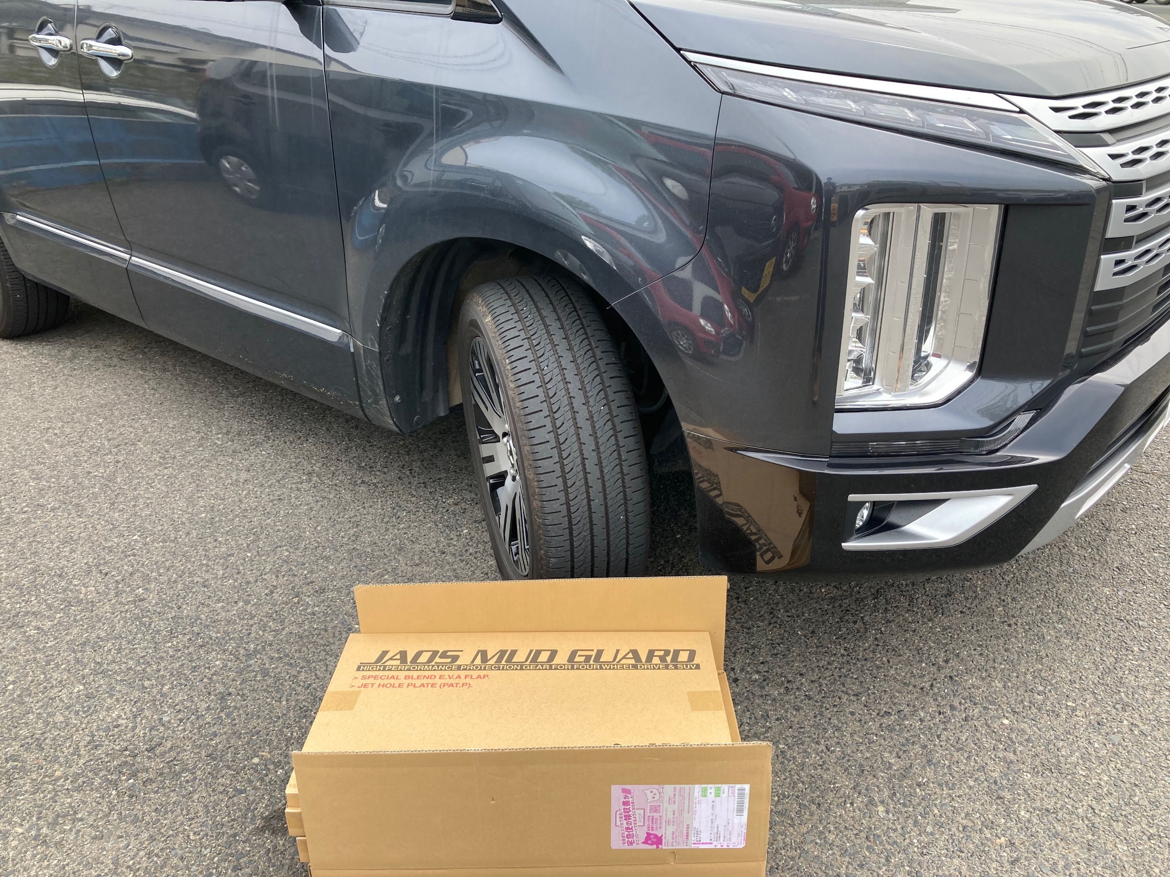 サイドの汚れ防止が目的ですが、デリカらしい?オフロードスタイルも魅力的ですね♬