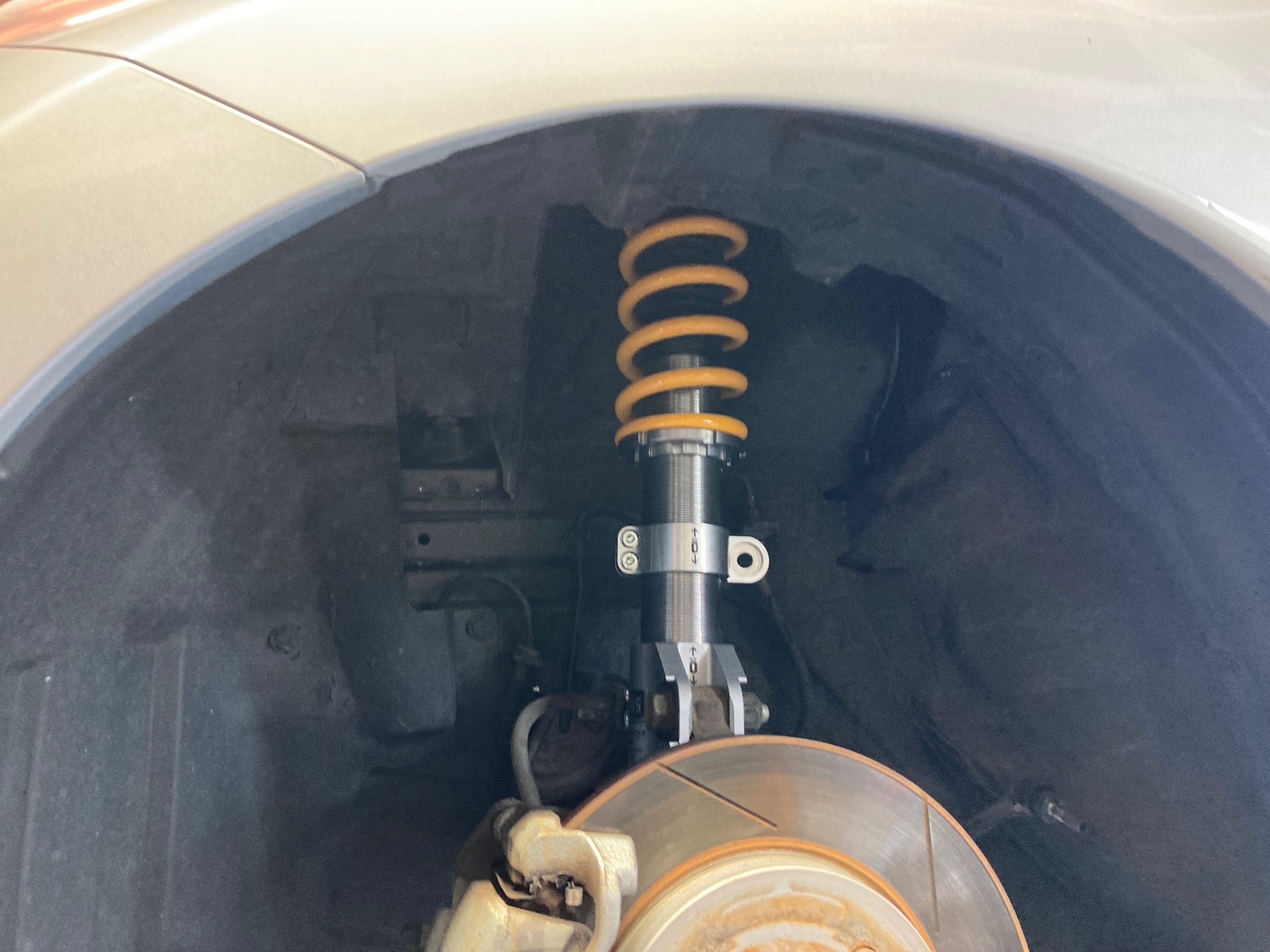 春に「ポテンザRE-71RS」、そして「柿本改 マフラー」を装着させていただきましたが、他社製車高調からの交換となります☆