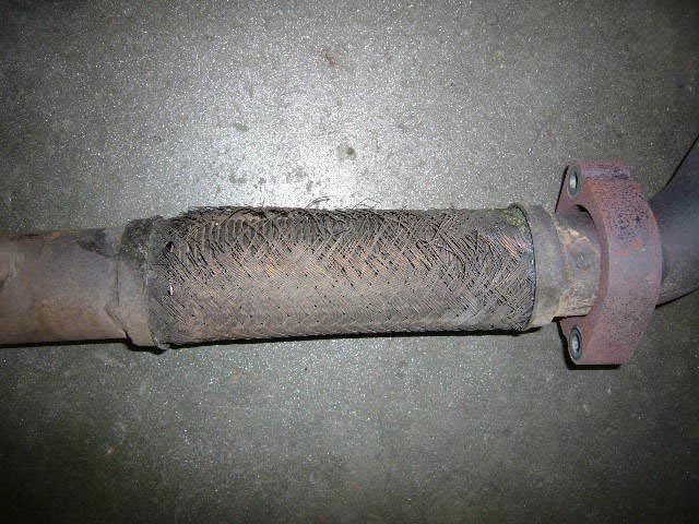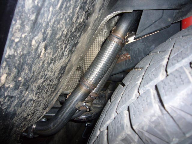 右フロントタイヤ脇にあるエキゾーストパイプに穴があき、これらのパイプを純正新品に交換です。