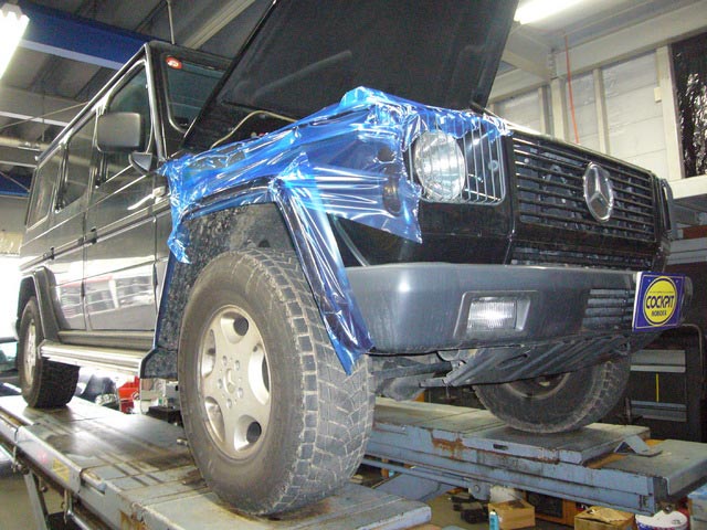 腐食により、穴があいてしまったマフラー交換のクルマ(アルファ155)を先日もチョットご紹介いたしましたが、こちらのメルセデスGクラスのお客様も、経年変化によりマフラーに穴があき、排気漏れ、それに伴って音量が大きくなってしまいました。。