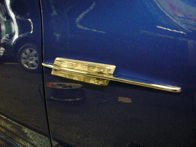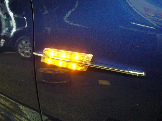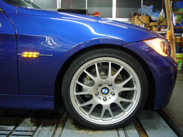 ブルーのE90(後日カスタマイズカーUP予定)のお客様は、新発売のAOP マーベラス サイドLEDマーカー(¥15,750 税込)を装着!
