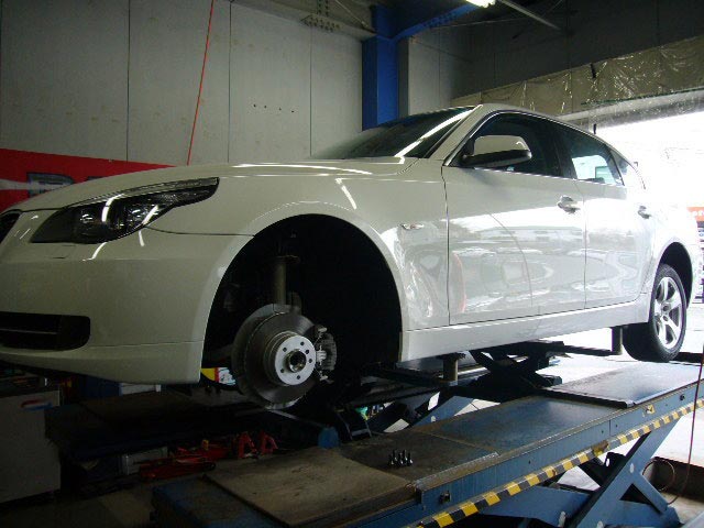 E60は、インターフェースにて地デジ入力 + タイヤ交換、E92 M3はAOPLEDリングライト装着、E90 320はNUTECオイル交換。