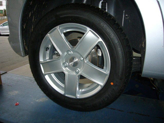 カングーの15インチは、キャリパ―とのクリアランスが少ないものが多く、ホイールによりバランスウェイトの貼り付け位置を調整しなければなりませんね。