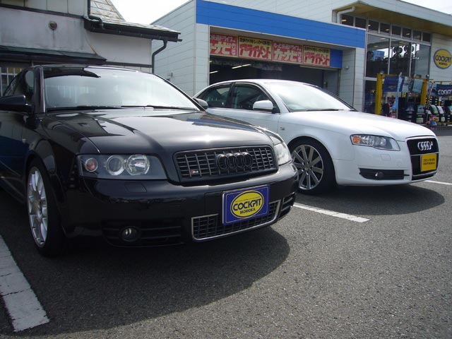 2010年9月28日 ツイート 8E アウディA4、そしてS4が同時期にご入庫いただきました。A4はアイバッハ・スプリングの装着(提携認証工場にて)。S4はアライメント調整と、スプリントブースターの装着です。2台揃うことは、めずらしかったので撮ってみました。ありがとうございます。 Prev Next