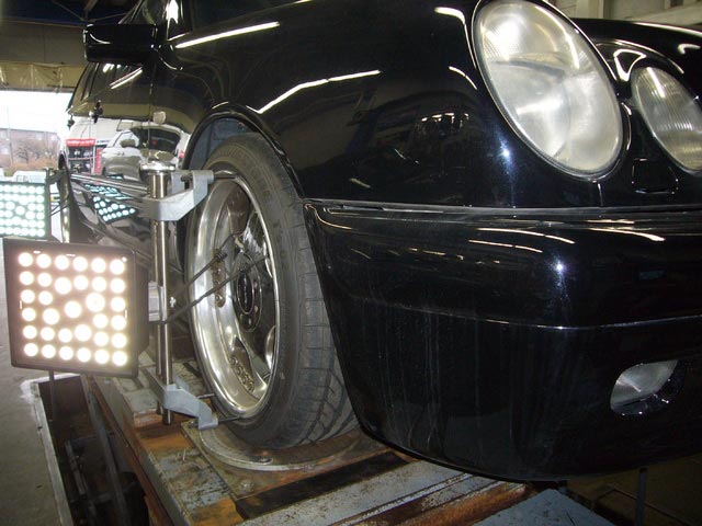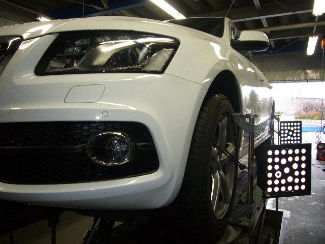 画像は、アライメント調整でご入庫いただきましたメルセデスW210、そしてアウディQ5のお客様。