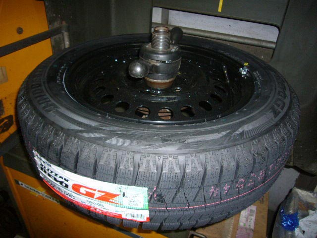 新車のキューブのお客様は、サマータイヤにアルミホイールを、スチールホイールに「ブリザックREVO GZ」を組込み。