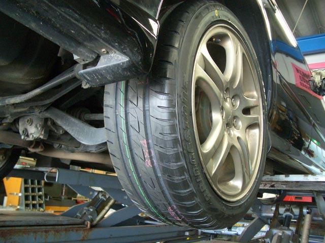 タイヤも、省燃費タイヤ「エコピア」が人気で、GDフィットのお客様はスタンダードエコピア「EX10」へ、フィットRSのお客様はコンパクトカー専用エコピア「PZ-XC」/フロントスピーカー交換、BE5レガシィB4のお客様はセダン・クーペ用エコピア「PZ-X」/アライメント調整でご入庫でした。