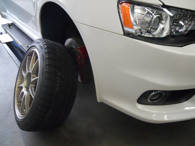 本格的なシーズン前に、ランエボⅩ・ポロのお客様へスタッドレスタイヤ(REVO GZ)を装着させていただきました。