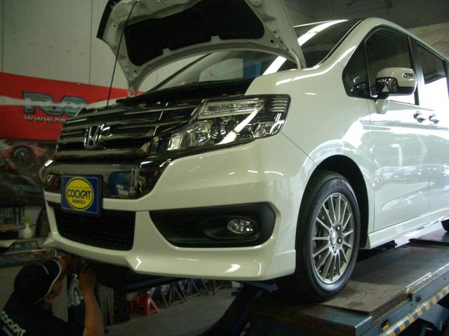 春にエコフォルムCRS101を装着させていただいたRK後期ステップワゴンスパーダのお客様は、ボッシュ ホーンとライセンスランプLEDの装着。