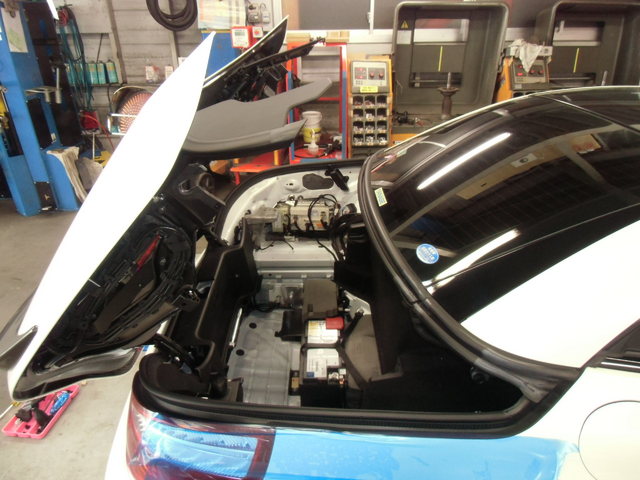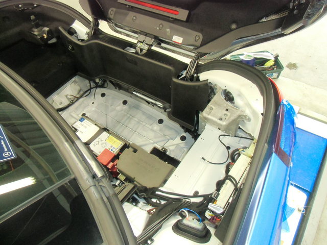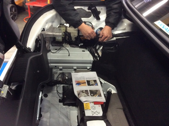 車両のトランクルーム内の左側に接続して作業を進めていきます。