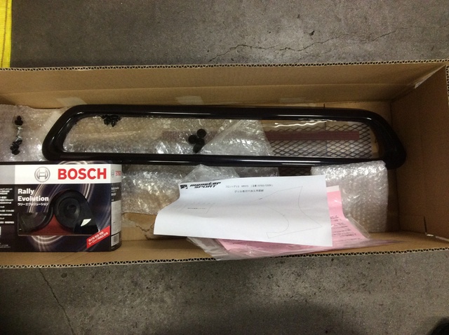 今日は仮合わせの作業です。バンパーを外したついでにボッシュのホーンも取り付けです。