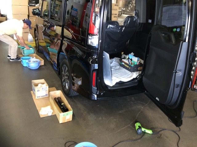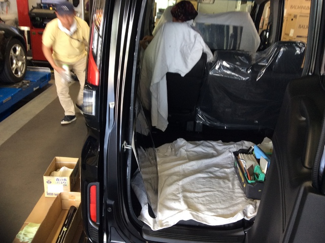 今回はナビやその他のパーツの取付けと並行してのスケジュールのため、業者さんに当店まで出張してもらって作業してもらいました。