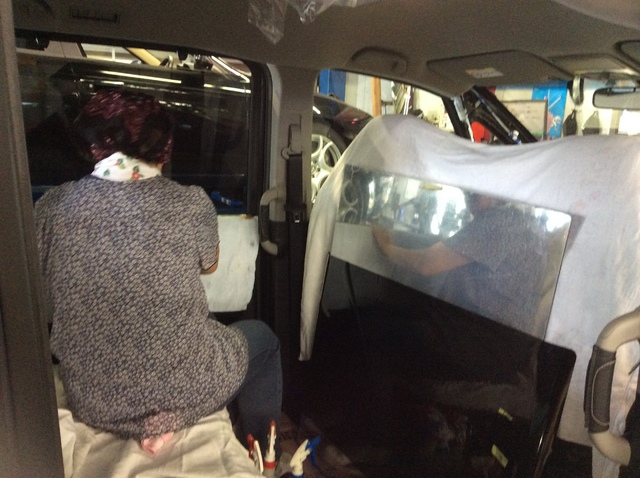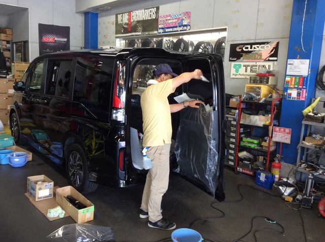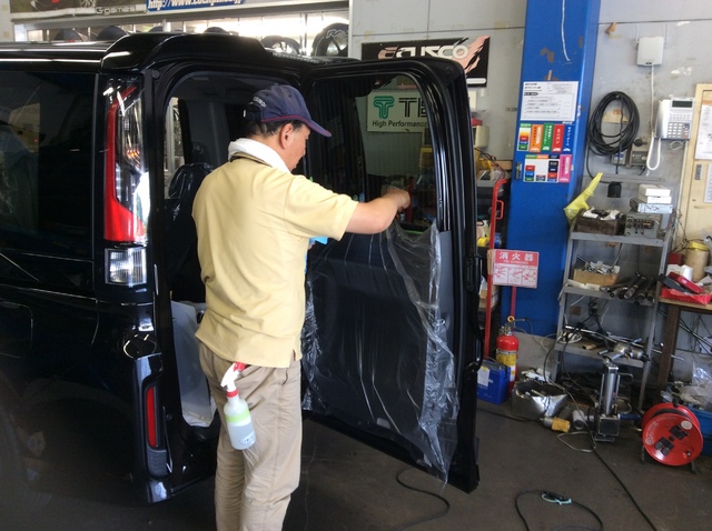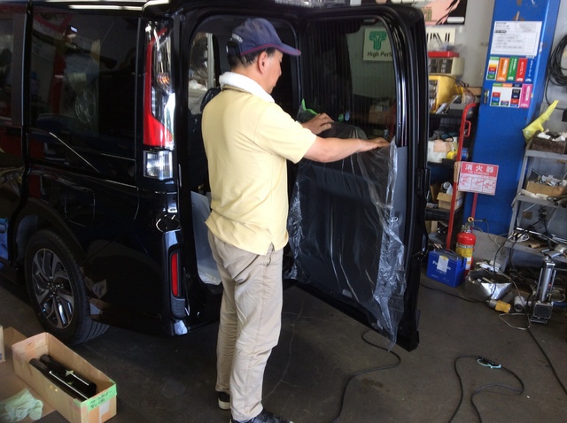 当店ではこのフィルム施工の作業は、いつもお願いしている腕の良い業者さんに外注で作業してもらっています。