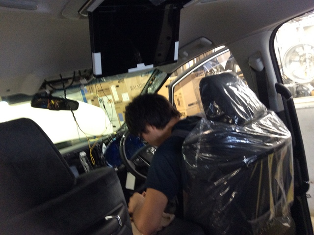 定番の、フリップダウンモニターとバックカメラは付きました。