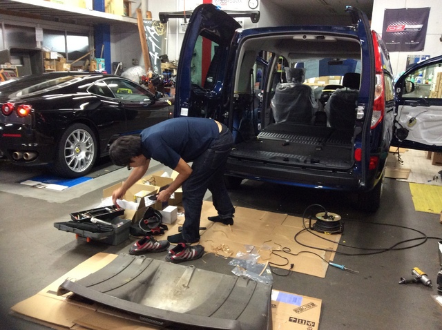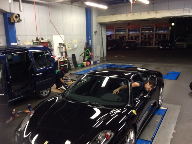 タイヤの組み込みをしながら、いつものアライメント調整やナビの取り付けで大忙しです。