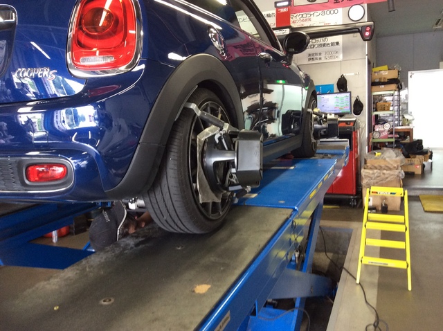 今日は先日KONI FSDダンパーを装着したF56 MINIが調整中です。