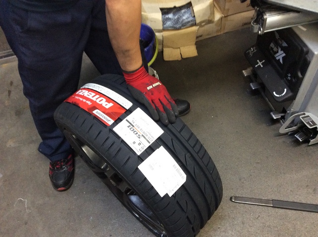 夏タイヤのタイヤ交換もまだまだ続いていまして、画像のメガーヌRSにはポテンザS001を装着です。